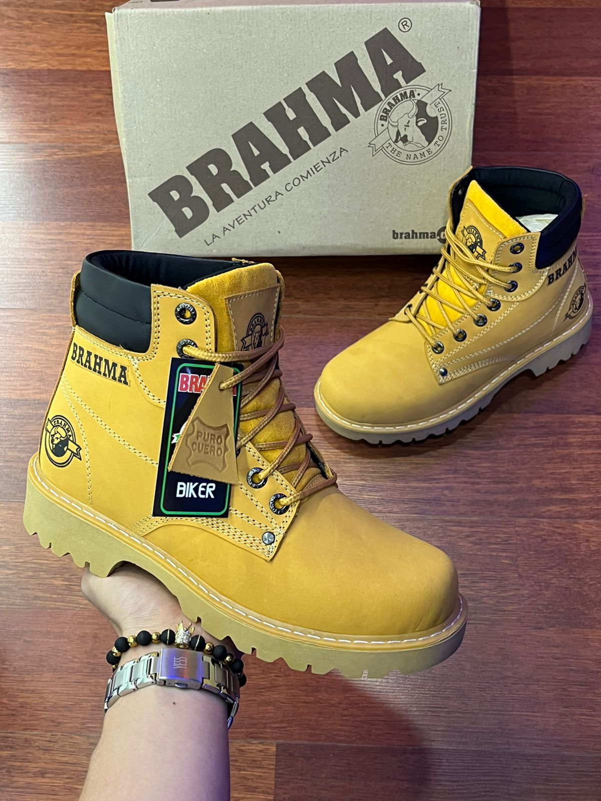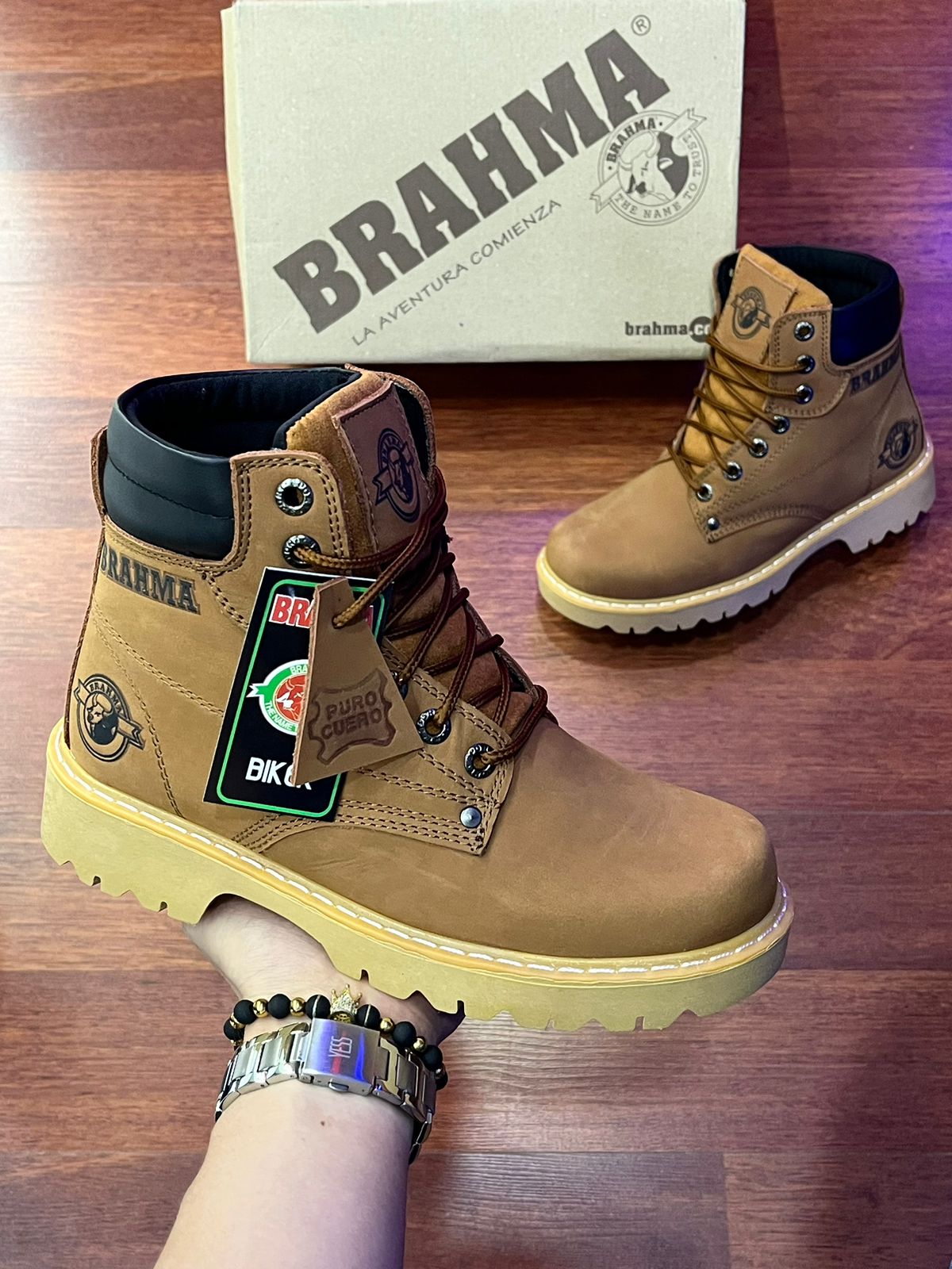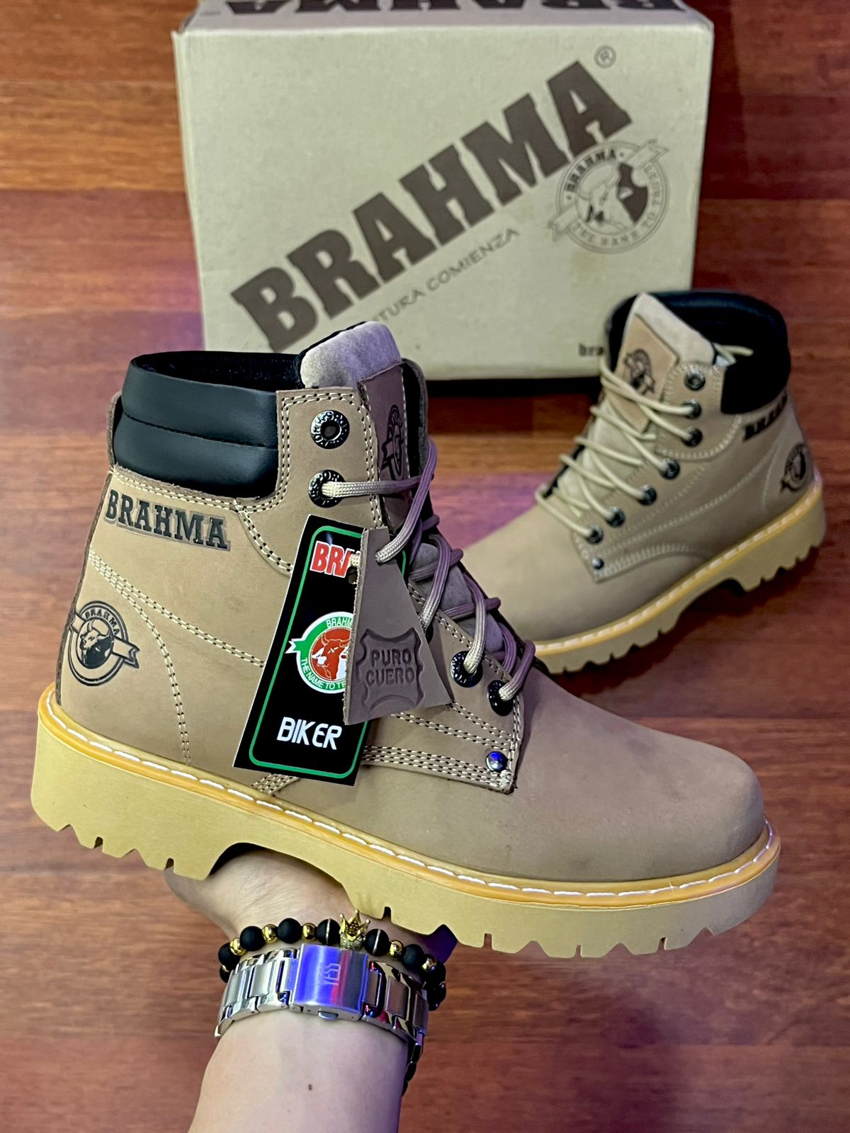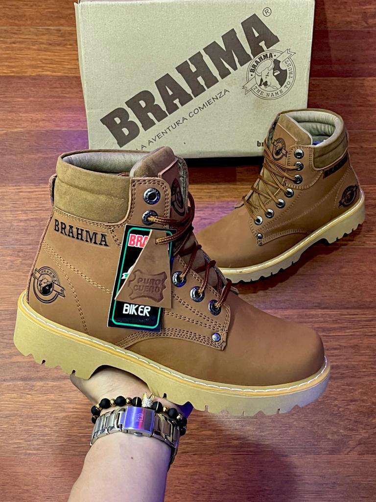 Botas Brahma en Cuero Café con Suela Beis
