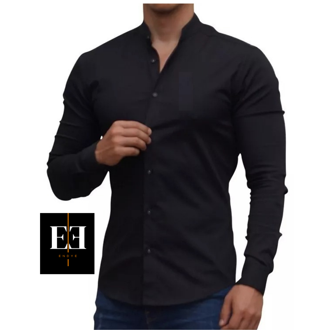 Camisas Slim Fit Cuello Mao